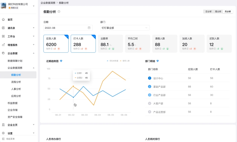 自定義團隊/個人的統(tǒng)計查看角色;自主配置團隊/個人的可查看統(tǒng)計內(nèi)容和時間范圍員工統(tǒng)計更精細(xì),團隊統(tǒng)計更便捷