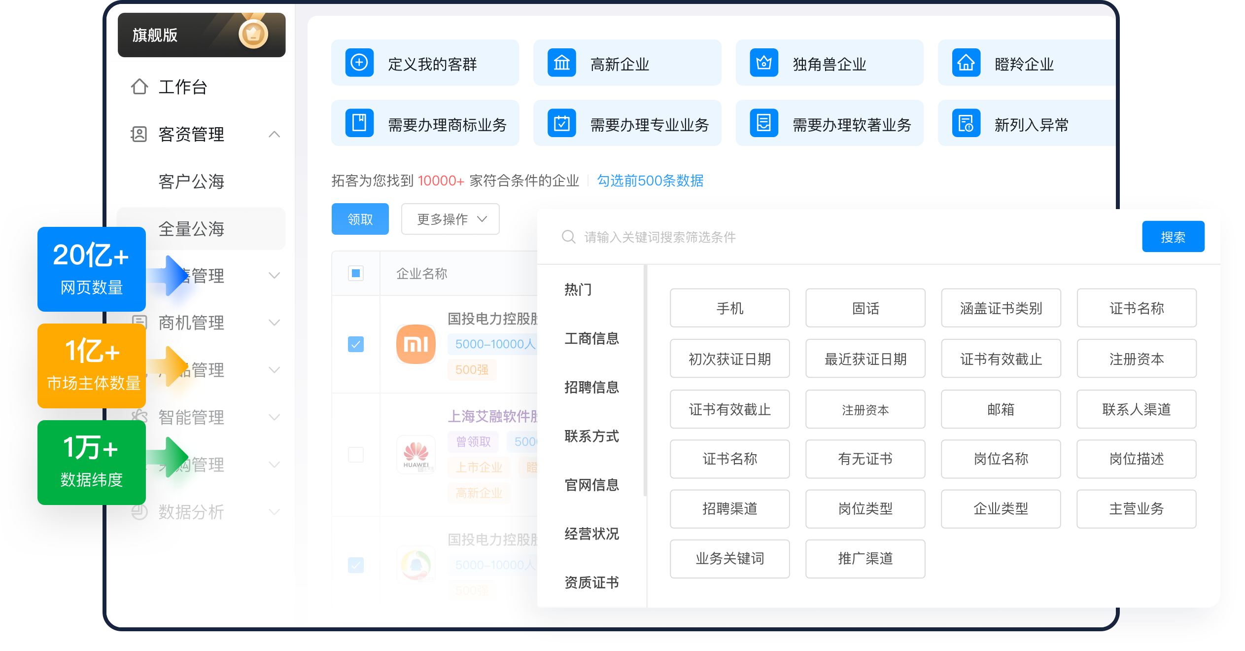 快速探索潛在目標客戶,并提供多種高效的觸達方式,實現(xiàn)市場的快速覆蓋;同時深度融合釘釘,解決系統(tǒng)不互通的低效問題,真正為企業(yè)提供一站式、全流程銷售工作方式,降低客戶管理和銷售管理的門檻,提升銷售效率。