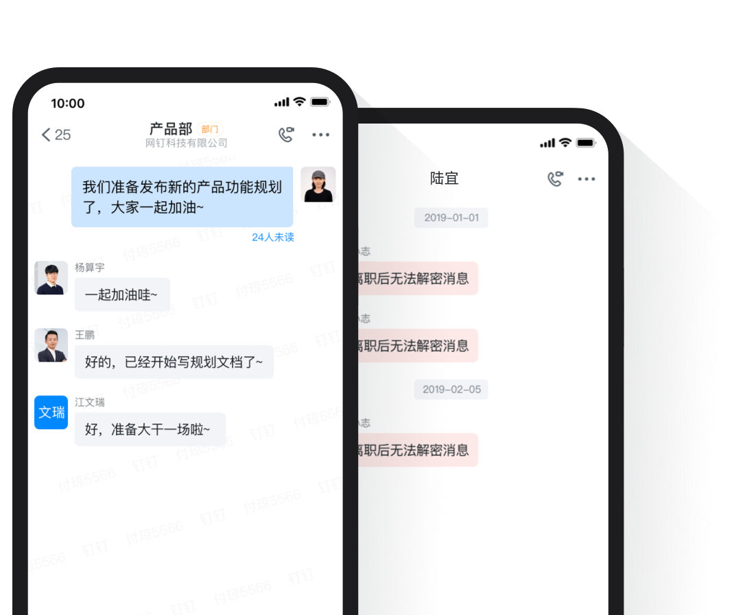 組織內(nèi)實(shí)名制聊天,員工離職自動(dòng)退群。聊天支持水印,防截圖泄露,保障信息安全。