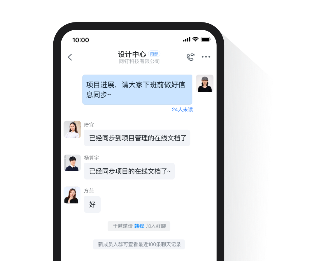 信息多端同步,不丟失。新員工加入組織,支持查看聊天歷史消息,快速融入項(xiàng)目。