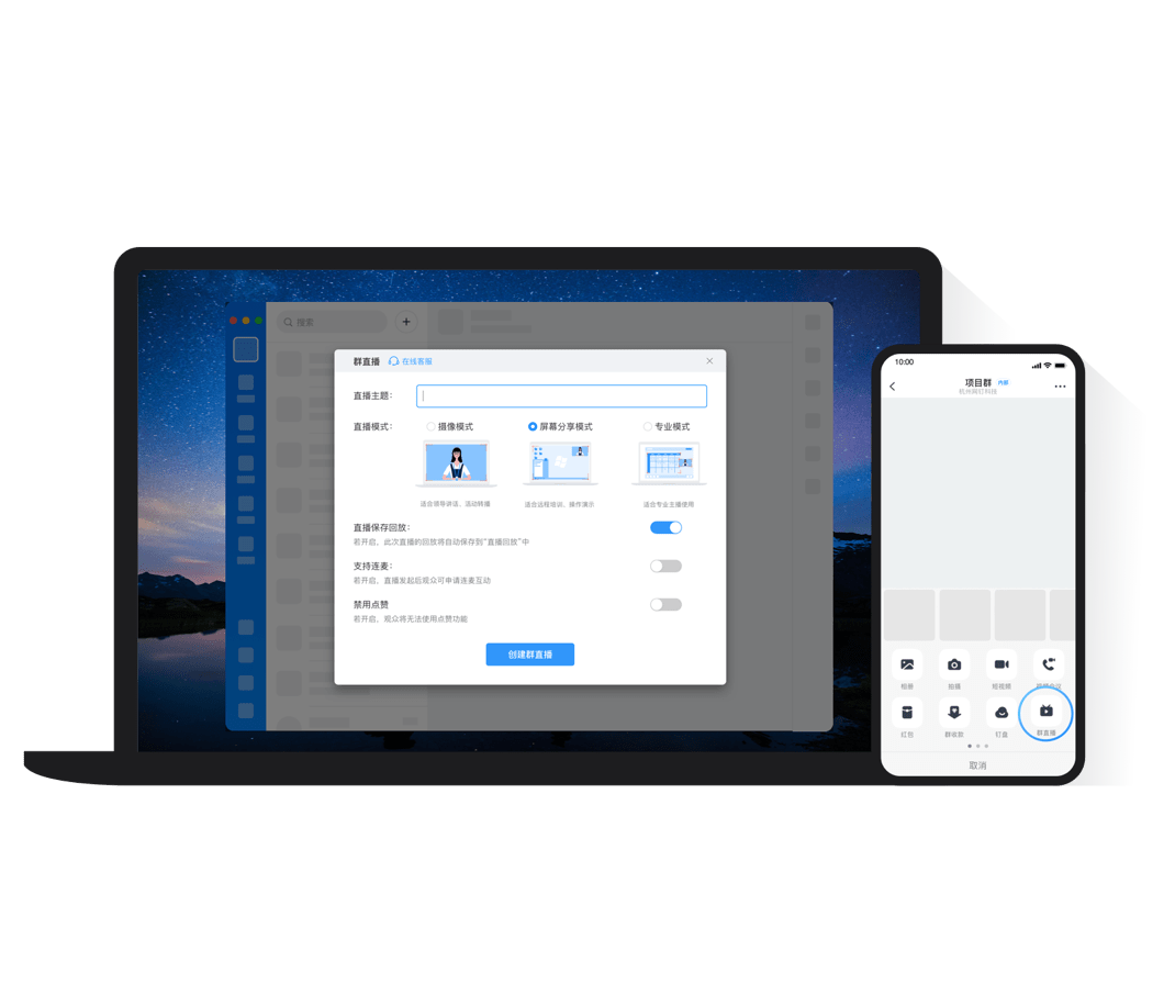 會議直播用釘釘發(fā)起會議直播,省去設(shè)備成本,還可將直播范圍控制在企業(yè)內(nèi),更安全更可控。