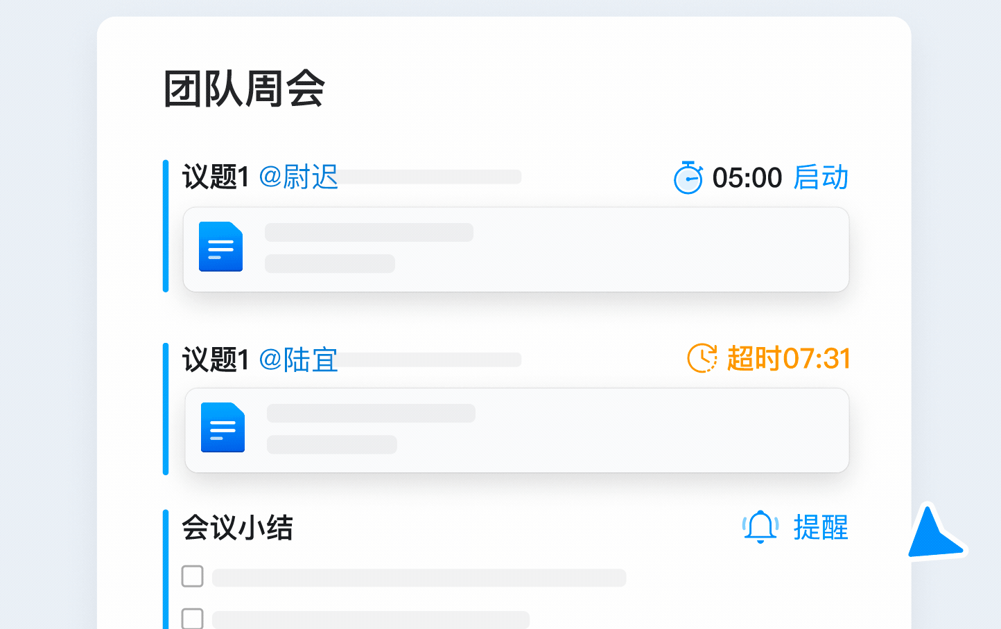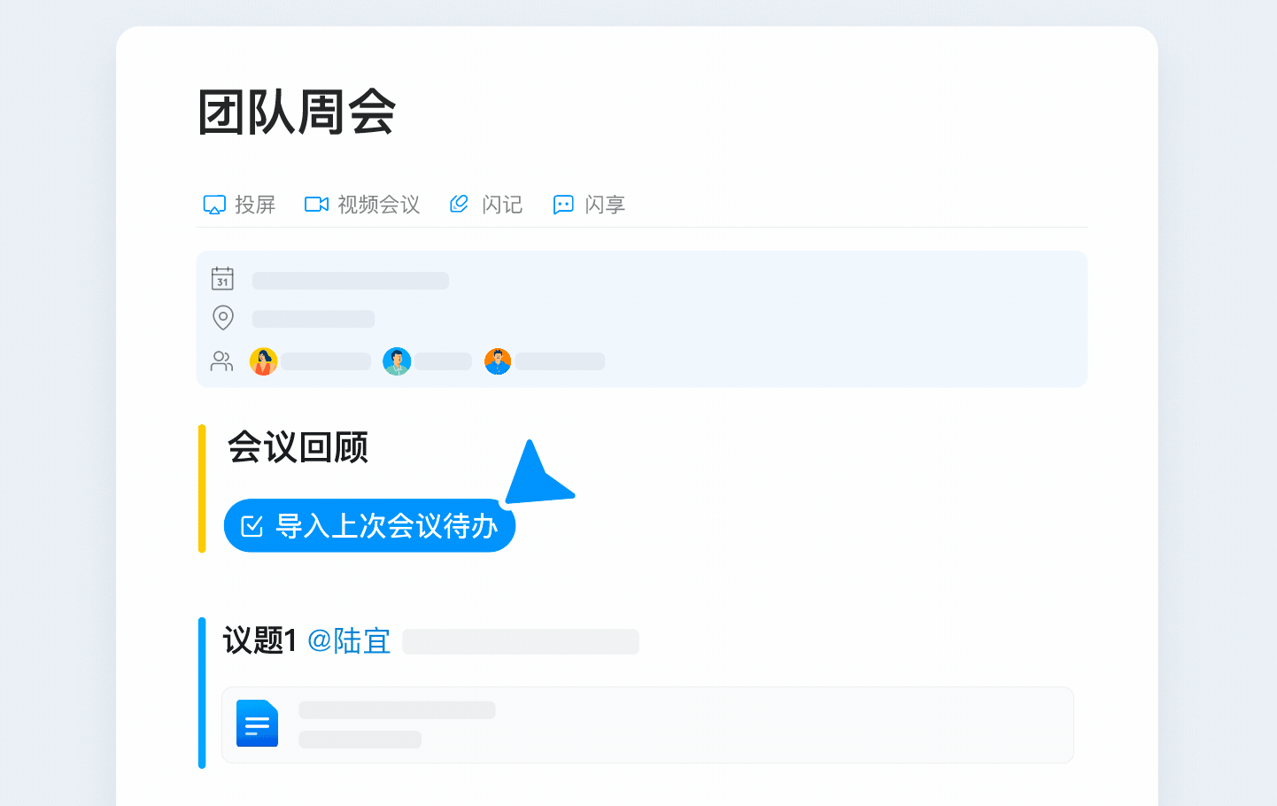 往期遺留任務(wù)導(dǎo)入本期會(huì)議,快速回顧工作進(jìn)展。決策先機(jī),始于開(kāi)會(huì)之前
