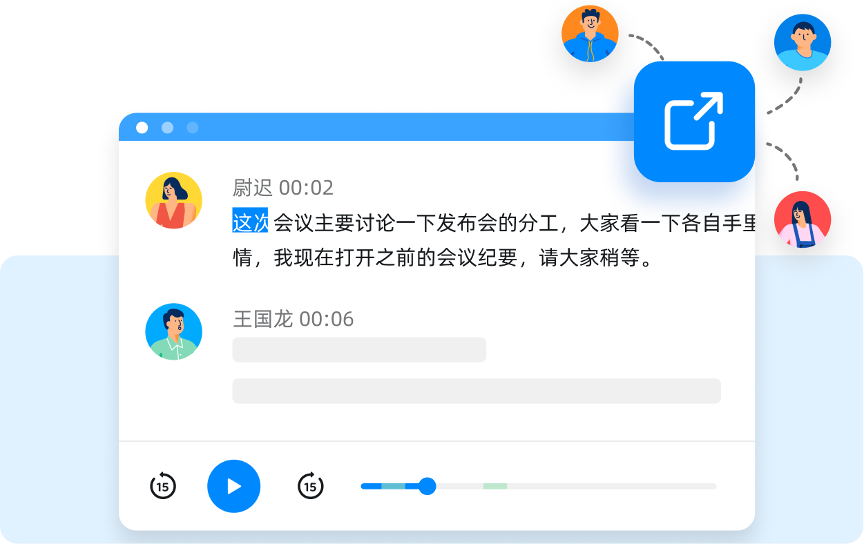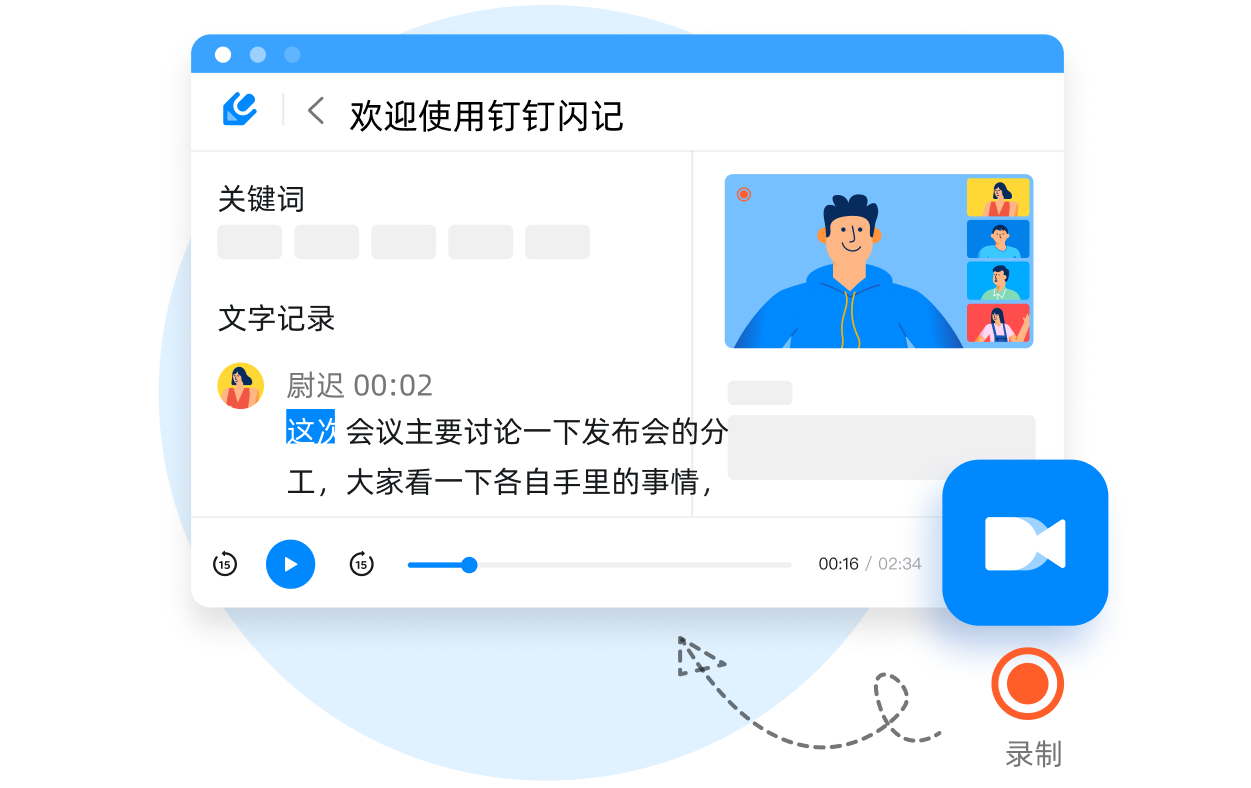 會(huì)中錄制,會(huì)后快速轉(zhuǎn)文字,云端保存音/畫/字,立體式記錄會(huì)議內(nèi)容