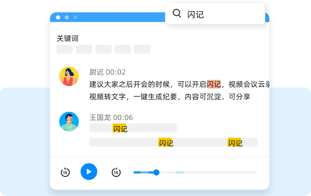 智能提煉會(huì)議關(guān)鍵詞,語(yǔ)音識(shí)別多位發(fā)言人,通過(guò)篩選、定位,提煉要點(diǎn)內(nèi)容