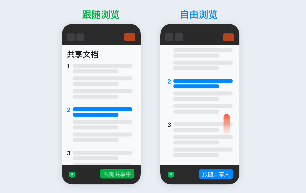 會(huì)中共享文檔,參會(huì)人可選擇跟隨主持人,也可以選擇自由瀏覽