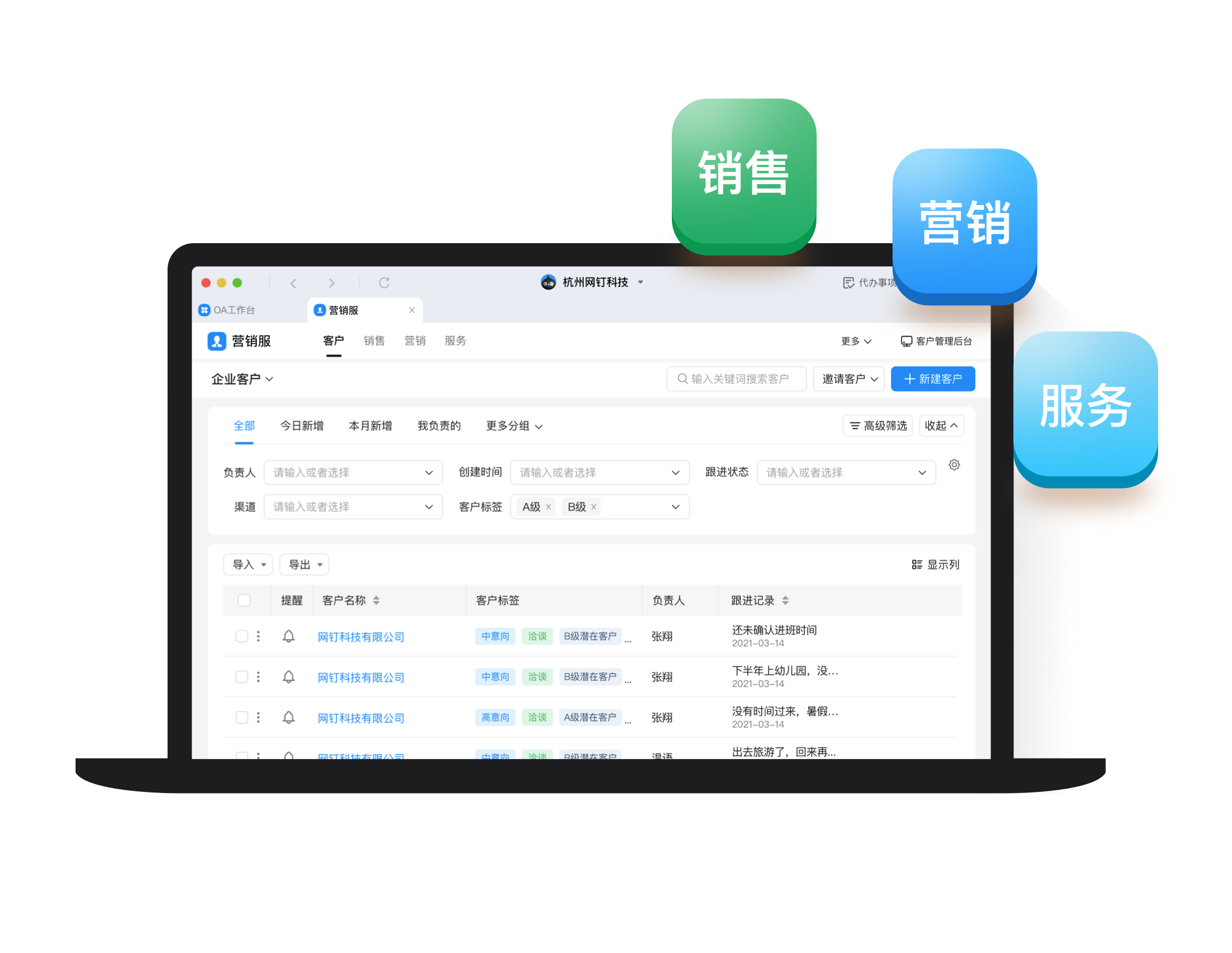 銷售跟進管理一體化集成營銷服工具,實現(xiàn)「營銷獲客 - 銷售跟進 - 合同回款 - 售后服務(wù)」全流程跟進,幫助提升銷售業(yè)績。